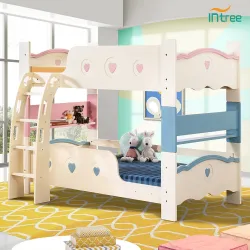 인트리 앨리사 원목 이층침대 세트(10cm안전양면매트+원목깔판 각2개포함), 핑크