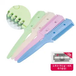 루시피 헤어 컷팅빗 머리손질칼 헤어커터 커팅빗 (색상랜덤발송) + 도루코면도날1세트, 1개 구매