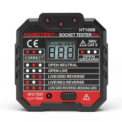 HABOTEST 테스트 소켓 LCD 테스터 중국 히로 요시 상당수가 제로 라인 파이어 와이어 위상 극성 검출기 다기능 전기 누설 검전기 미국 규정을 접지 HT106B, 1개 구매