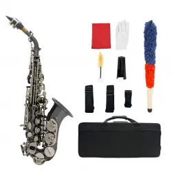 ammoon 짐을 싣다 팔꿈치 고음 비비 글러브 + 브러시 클리닝 천 옷깃 색소폰 피스 (임의의 색 부분 합당 코르크 페이스트)를 포함하는 수납 케이스 흑색 니켈 도금 한 황동, 화려한