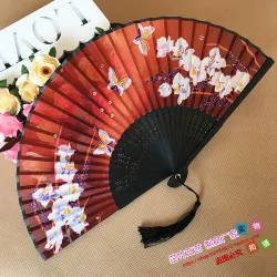 부채 유리 드라마 동일타입 차이나스타일 쥘 빈티지 7inch실크 무용 작은, T28-진청 푸른 뼈 블루색 만면 벚꽃, 기본 구매